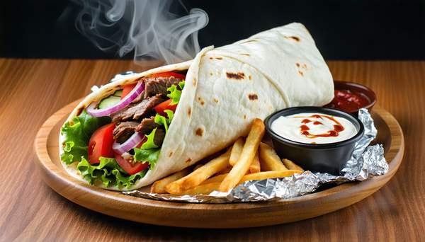 pita, mięso, surówka, frytki, sos *zdjęcie poglądowe