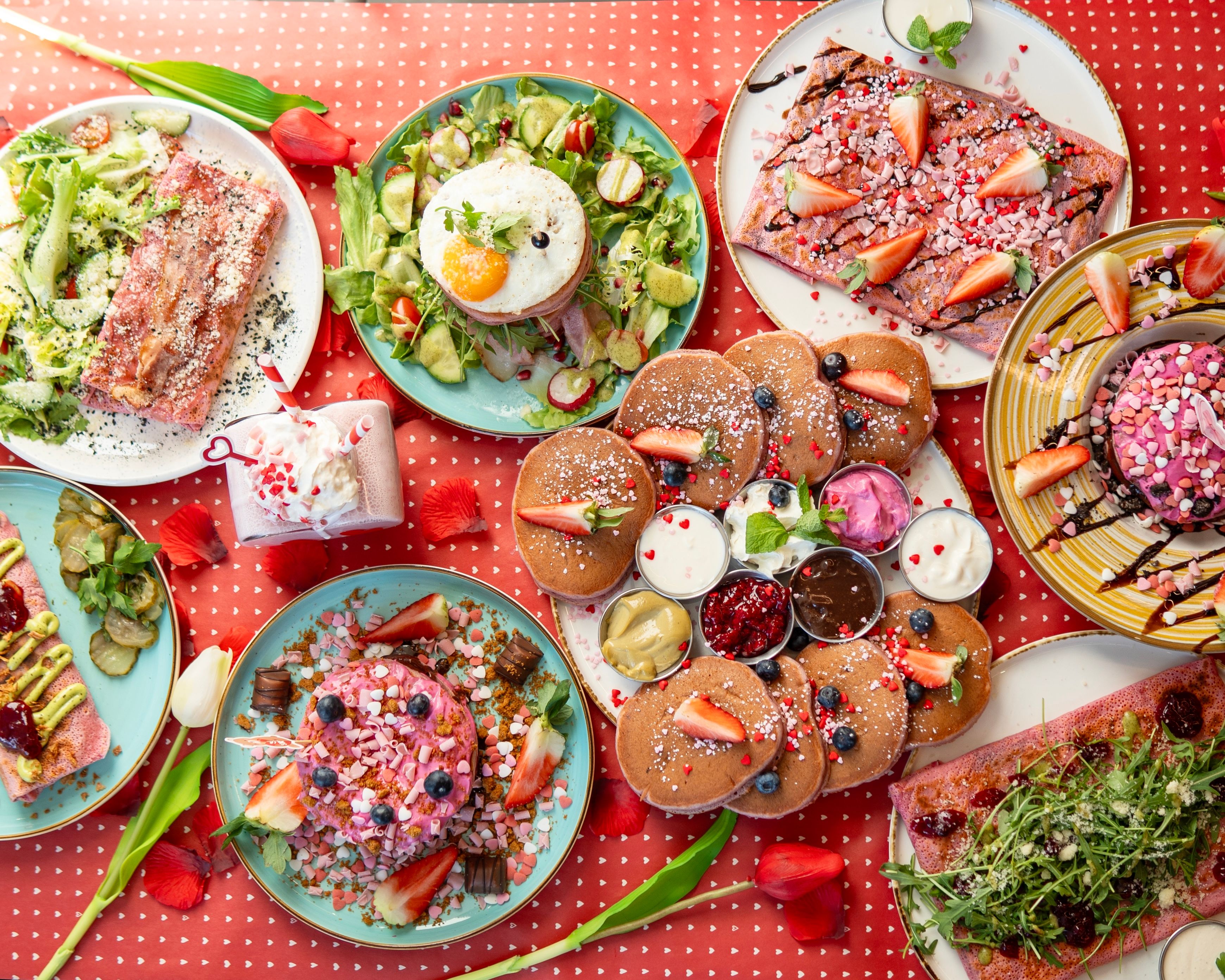 3 X PANCAKE / KREM PISTACJOWY / KONFITURA MALINOWA / KREM ŚMIETANOWY / CIASTO KATAIFI /SOS