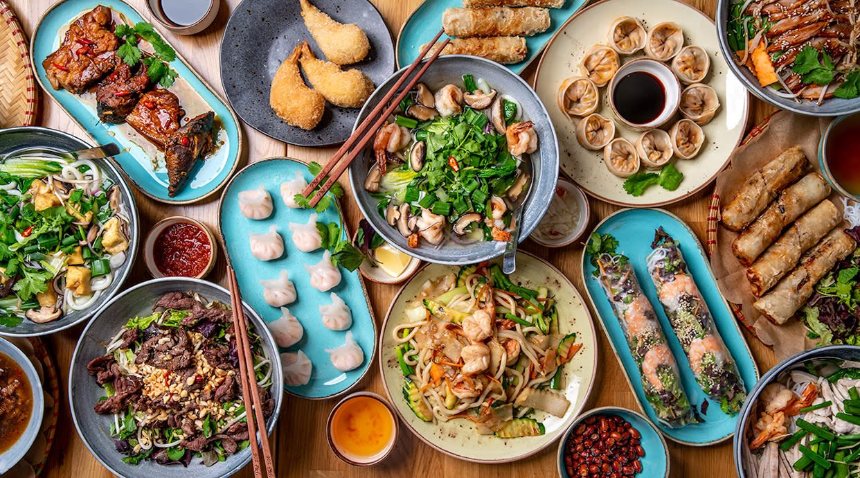 Krewetki, pak choy, grzyby shiitake, zioła wietnamskie