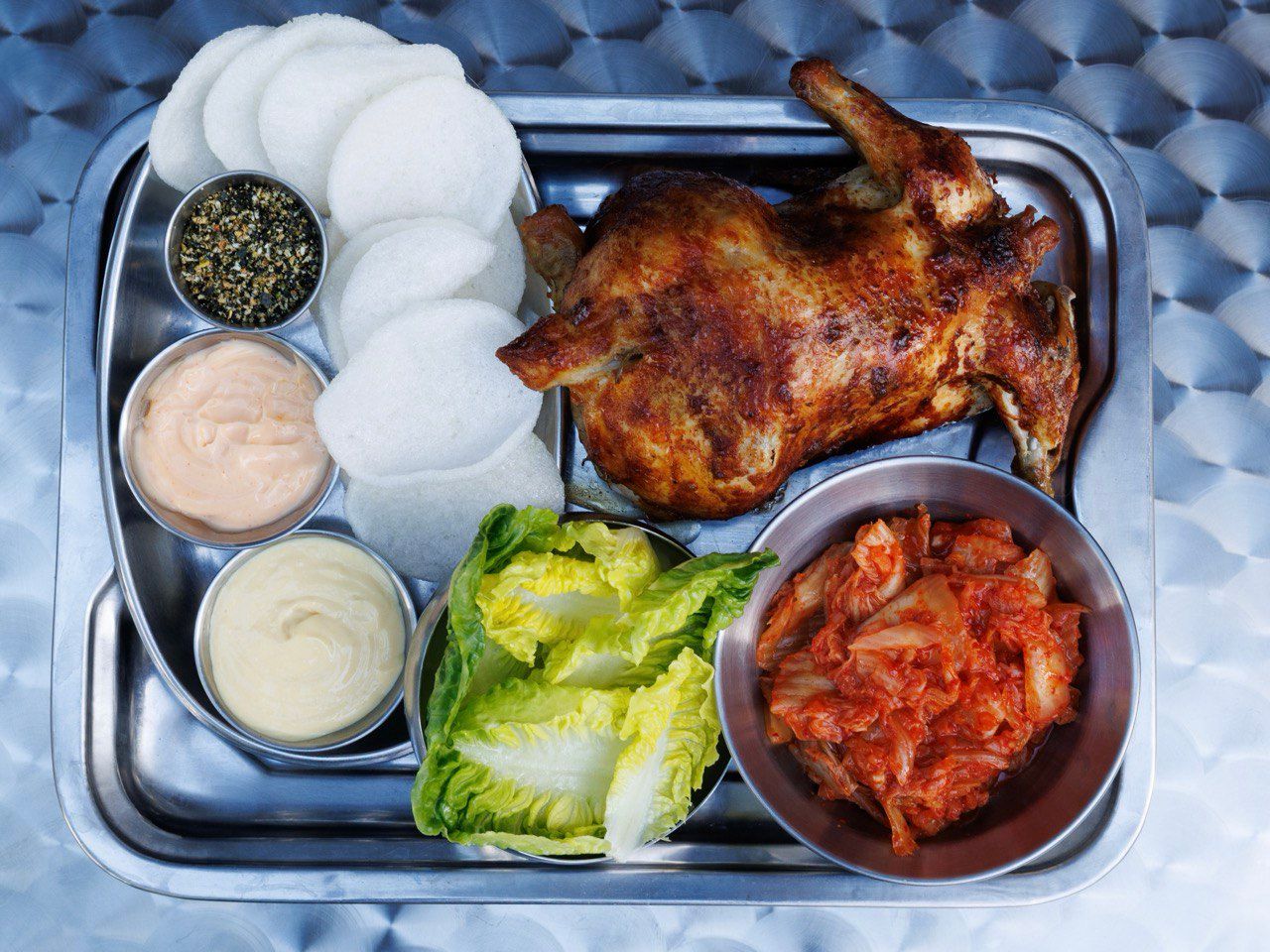 Popcorn z kurczaka "THE KURA", skrzydełka z kurczaka w stylu Buffalo, Frytki z batata, sos sweet-chili, sos czosnkowy