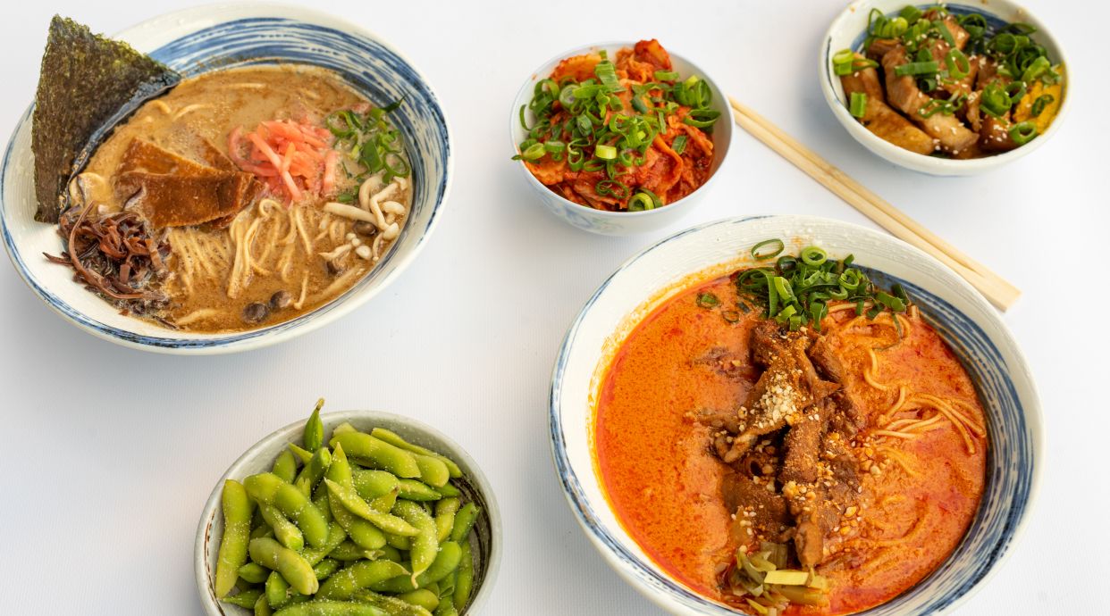 Wywar z kurczaka zagrodowego, tare miso, soboro z mielonej wołowiny i bambusa, menma, szczypiorek, nitki chilli, olej z chilli i zielonego pieprzu syczuańskiego. Możliwość wymiany makaronu.