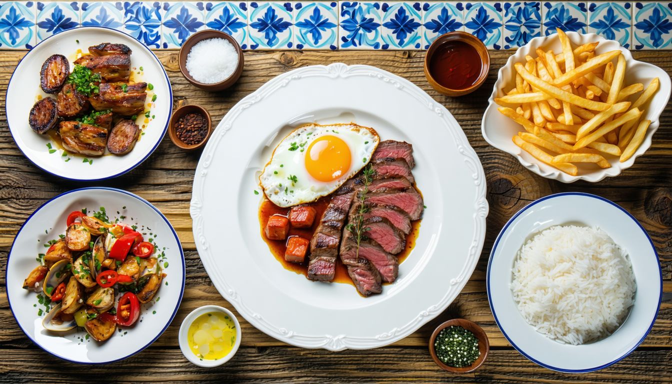 Um prato tradicional de porco em cubos cozinhado com amêijoas e batata.(1 pessoa)