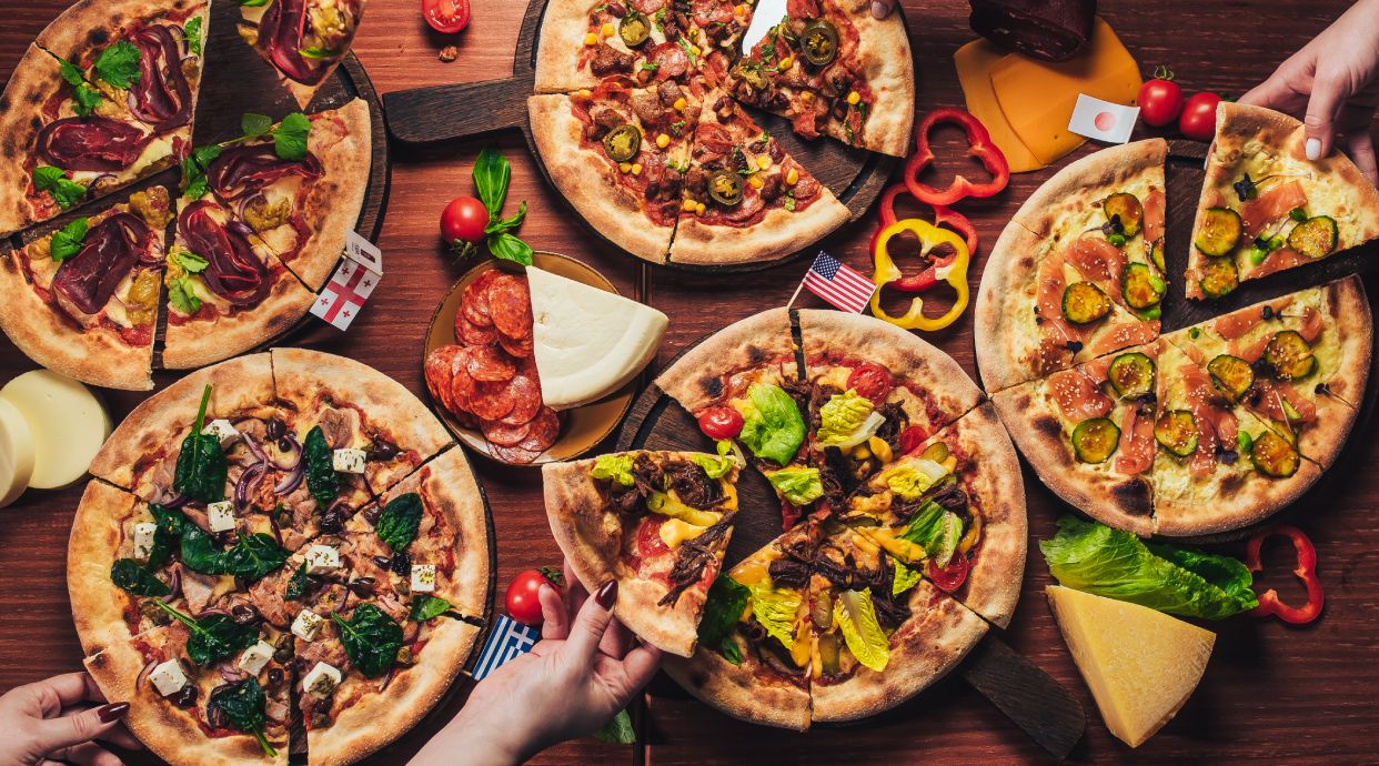 Molho de tomate pelado italiano, mozzarella fior di latte, fiambre, alcachofras, azeitonas e cogumelos