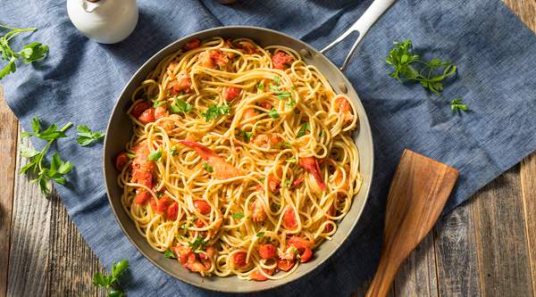 Paste fusilli, creveți, dovlecel, cremă de gătit - 400g