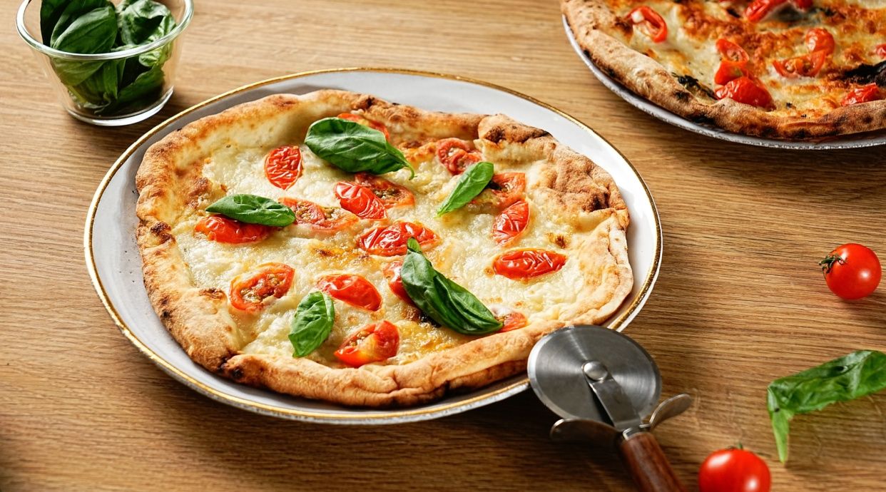 Blat pizza (apa, faina, drojdie, ulei de masline), sos rosii (su de rosii, busuioc, oregano), mozzarella, sunca de pui, ciuperci, rosii