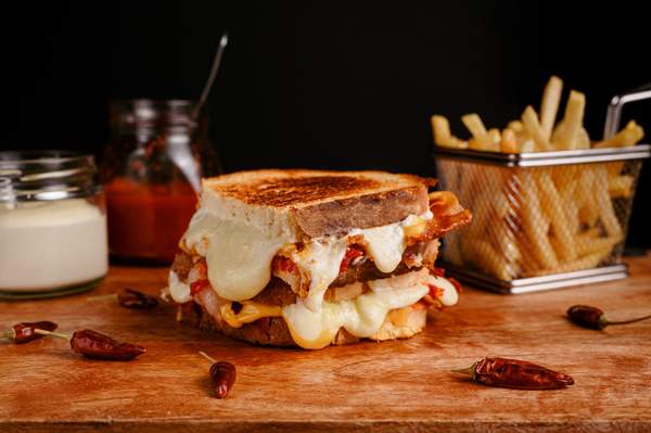 Cheese Bacon – un sandwich perfect rumenit ideal iubitorilor de branza si nu numai cu continut ridicat de bacon.Ce Cotine ? Mult bacon, dulceata de ardei iute, cheddar,mozzarella,unt,crema de branza, maioneza, totul invelit in doua felii de paine cu maia. * Imaginile au caracter informativ pentru a sugera timpul de produse. Informații nutriționale porție aprox 350 gr • Valoare Energetică (kJ/kcal): 4147.5 / 1001.2• Grăsimi (g): 62.2 din care:• Acizi grași saturați (g) 30, • Glucide (g): 60.8 din care:• Zaharuri (g): 56.1,• Proteine (g): 47.5,• Sare (g): 6.3Alergeni : Gluten, Soia, Lapte, Crustacee si produse derivate, oua si produse derivate, soia si produse derivate, telina si produse derivate,mustar si produse derivate,seminte de susan si produse derivate, lupini si produse derivate, arahide si produse derivate