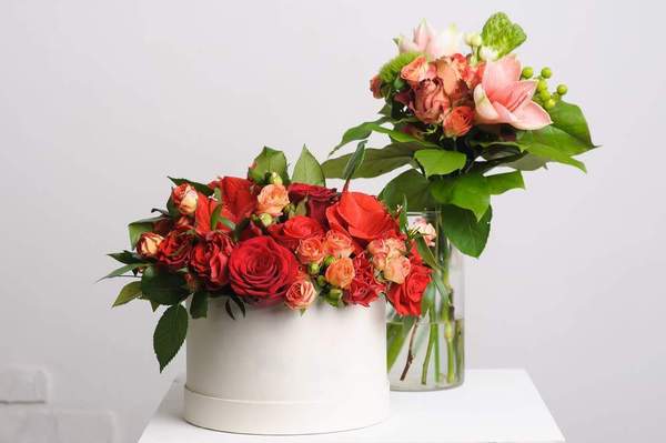 Aranjament Floral 5 Trandafiri Rosii In Plasuta