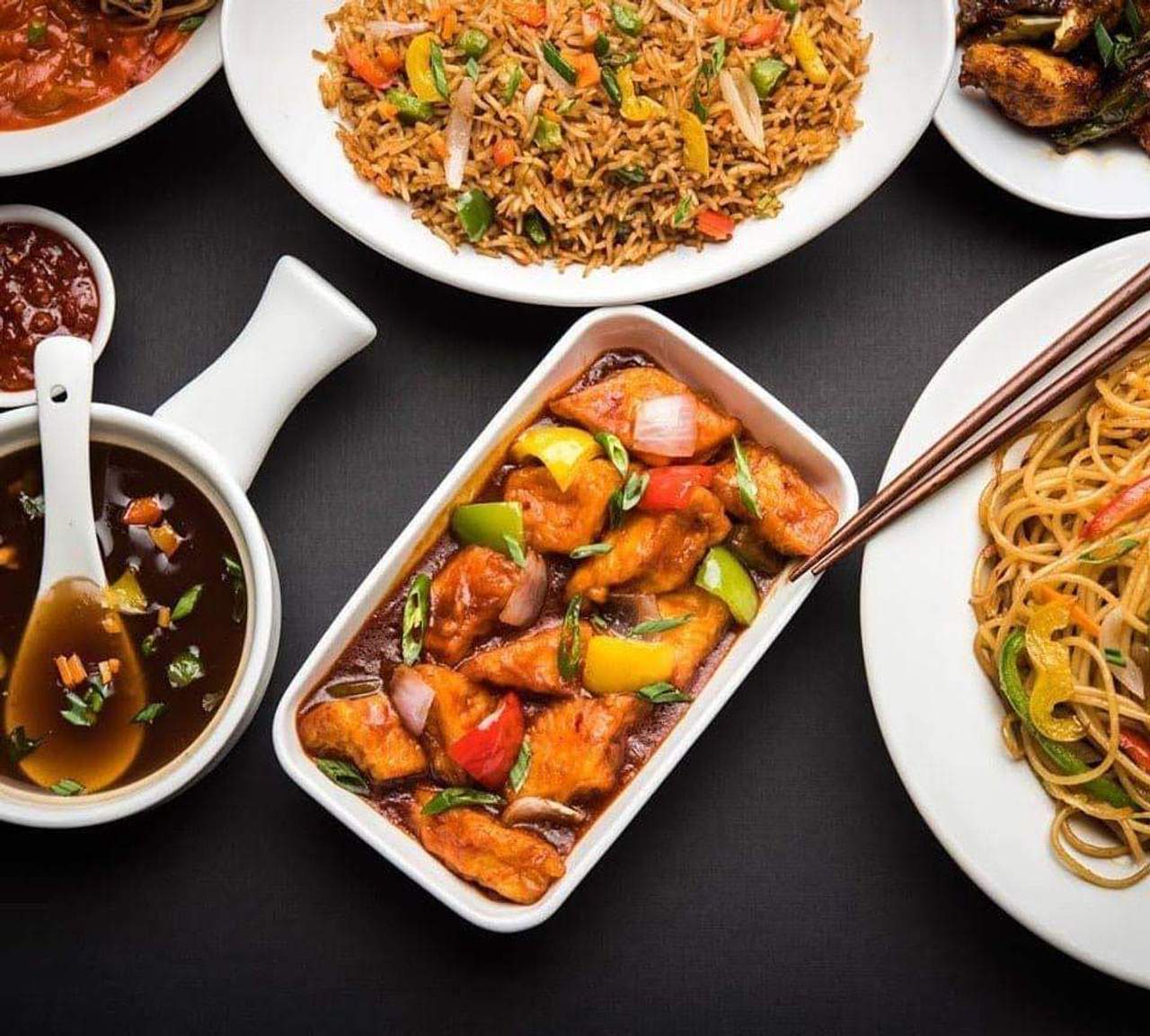 Carne de pui, aluat, sos picant, susan, condimente chinezesti