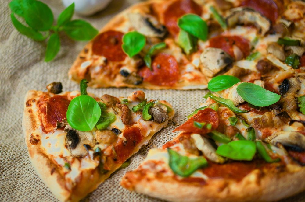 Sos de roșii, mozzarella, pancetta stufata, ventricina, ardei iute, ciuperci Champignon, sos alb cu usturoi