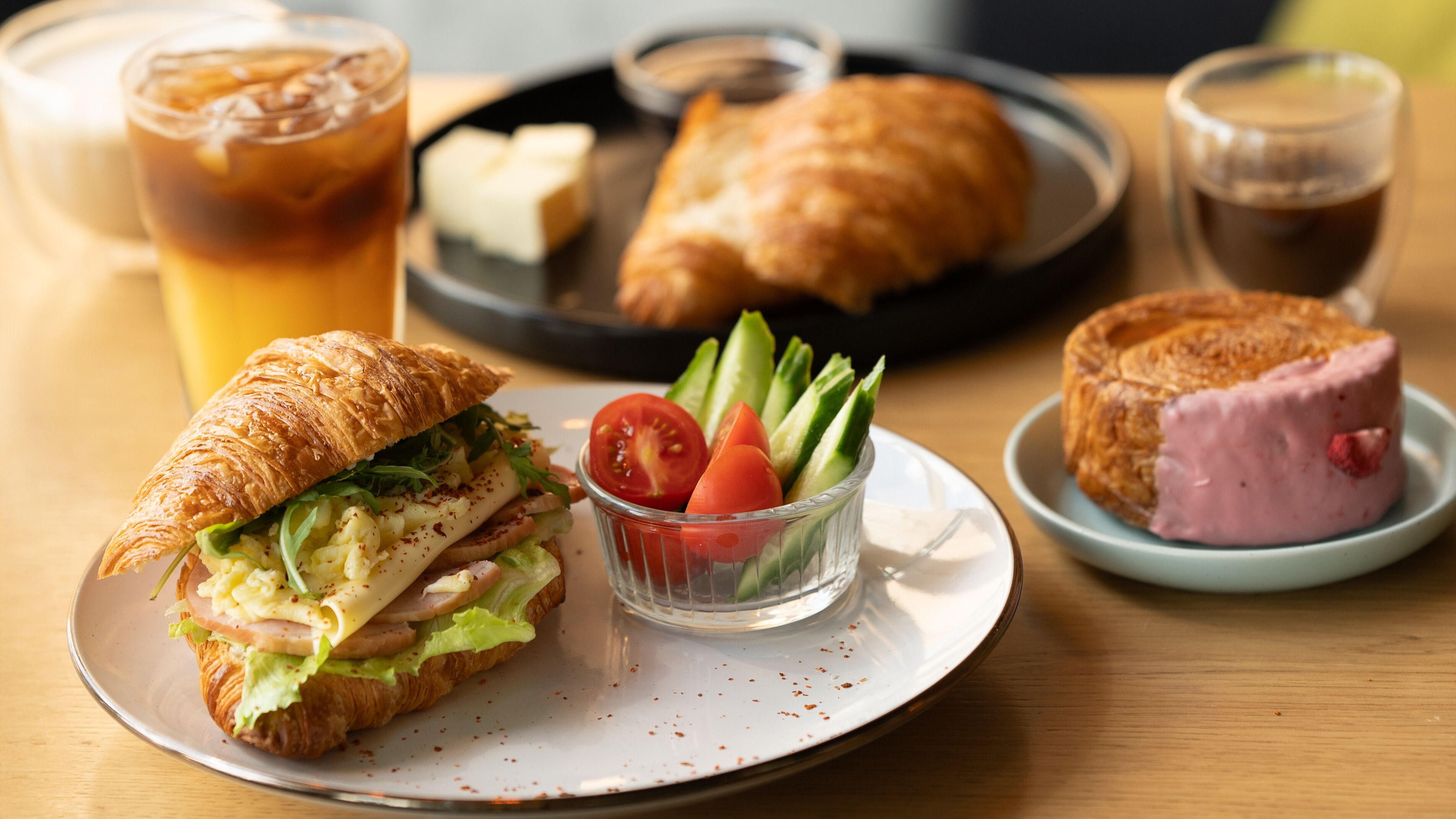 Дріжджове листкове тісто, маковий франжипан, вишневий конфітюр (ціла вишня), вишневий пряний сироп.Круасан подвійного запікання.*може містити кісточки