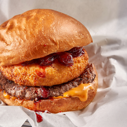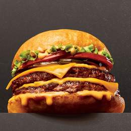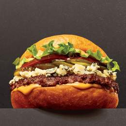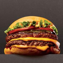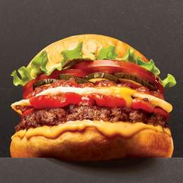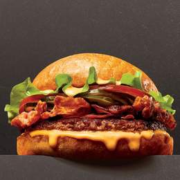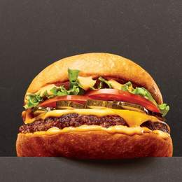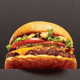 Котлета из мраморной говядины, латук, помидоры, огурцы, коктейльный соус, сырный соус, сыр Чеддер