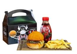 Мясной мини гамбургер, картофель фри 90 гр и напиток: морс из черной смородины/ морс из лесных ягод на выбор