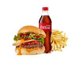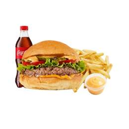 Сочный чизбургер с говяжьей котлетой, картофелем фри (90 г) и Coca-Cola 0,5 л. Идеальный комбо-сет для вкусного обеда или ужина.