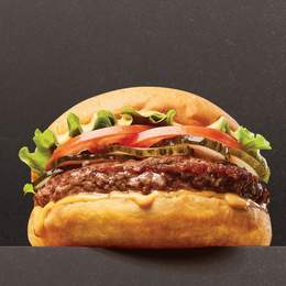 Котлета из мраморной говядины, латук, помидоры, огурцы маринованные, коктейльный соус