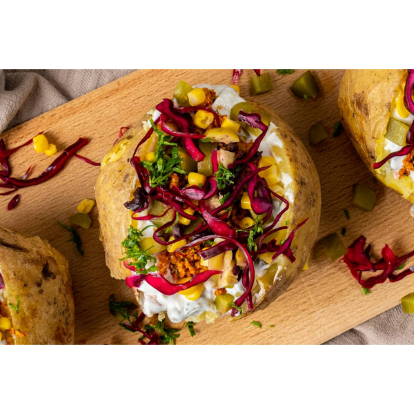 Картоф с краве масло, кашкавал, луканка, шунка, царевица (700г)