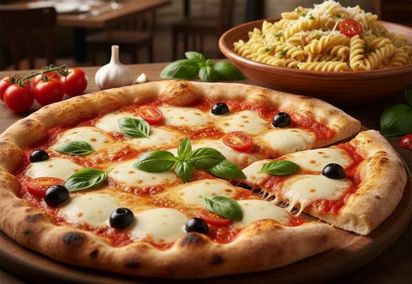 Италиански макарони, доматен сос, кашкавал моцарела, царевица, маслини - 450г