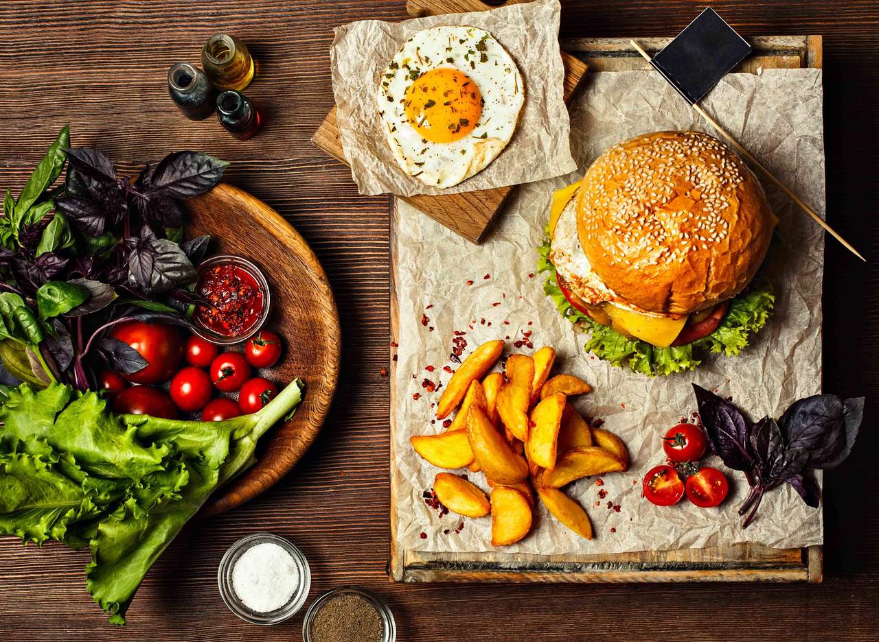 Бургер с кюфте от сезонни зеленчуци, напитка по избор и гарнитура картофки