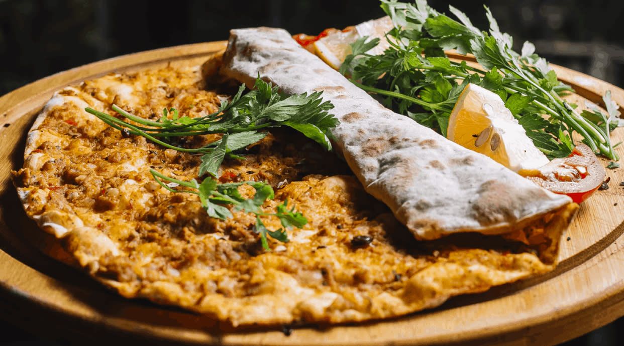 Pan turco, carne, pollo o mixto, queso, ensalada mixta y salsas