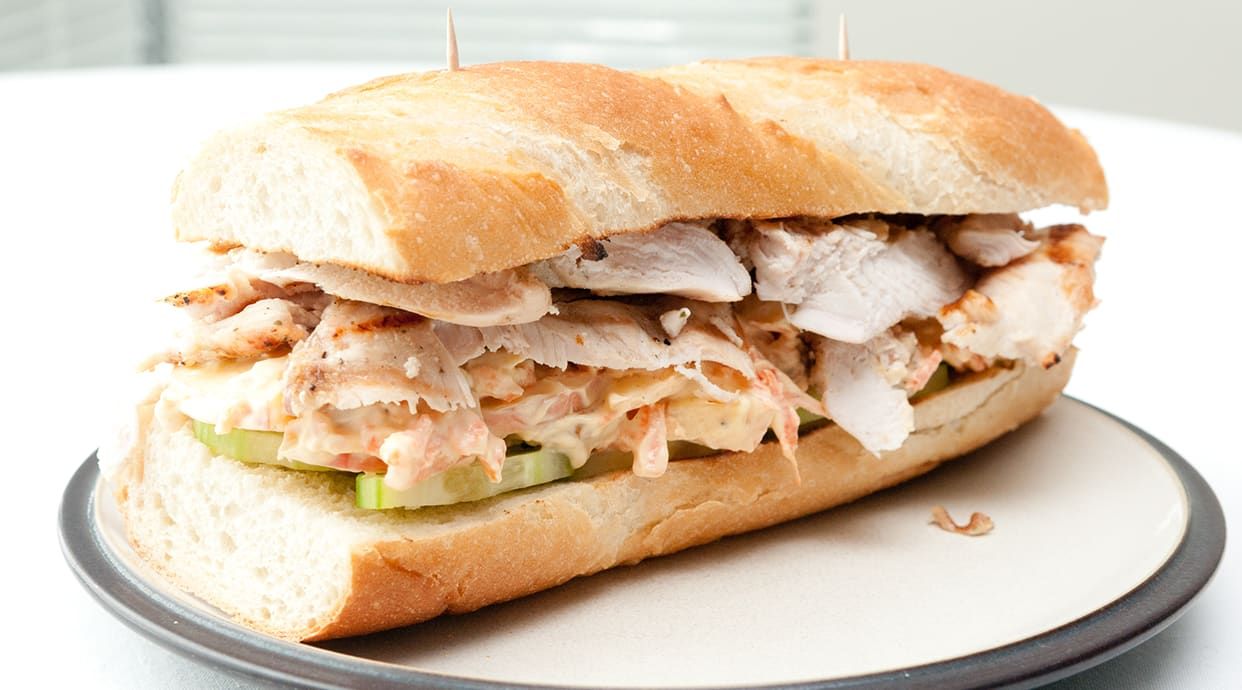 Pechuga de pollo, pimientos verdes, cebolla, queso y mahonesa