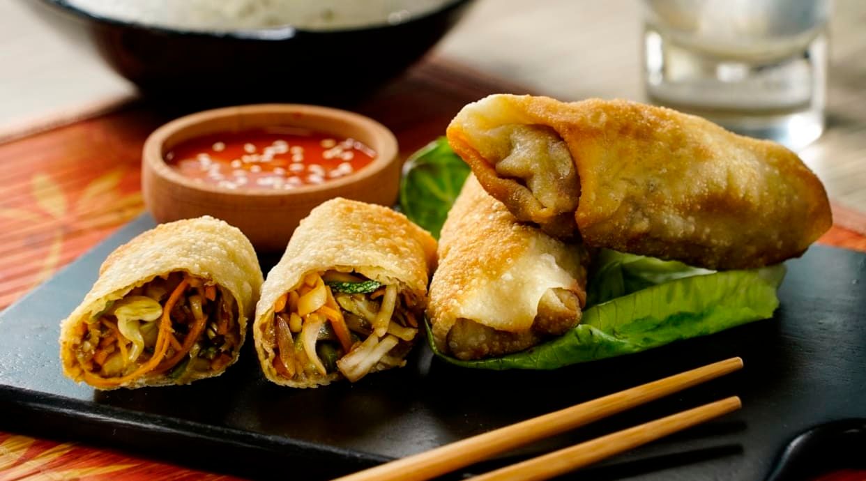 Raviolis chinos: empanadilla frita rellena de centro de lomo, setas y verduras