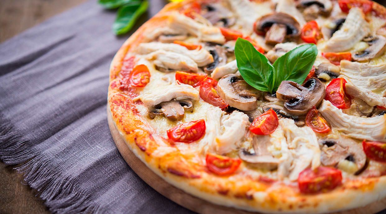 tomàquet, mozzarella, xampinyons i pernil dolç