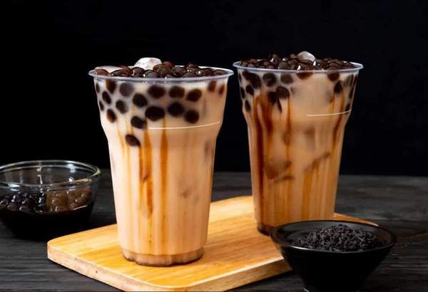 Té con leche, tapioca, pudín y gelatina de hierba.