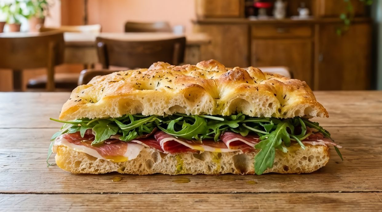 Inspirado en los sabores de Italia. Pan crujiente, rúcula fresca, mortadela de pistacho, ricota suave, salsa pesto casera y unas gotas de olivada para un toque final perfecto. Un bocado que te transporta directo a la cocina italiana.
