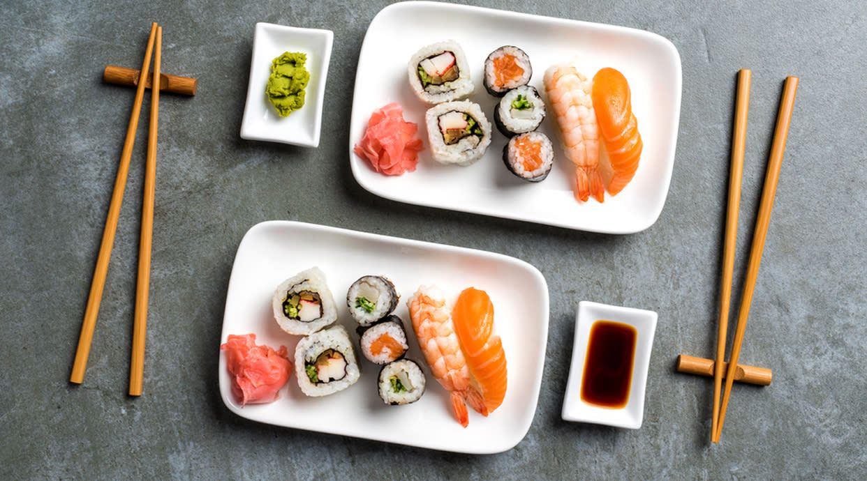 Nigiri sushi mix (6 pzs.) y maki mix (8 pzs.)