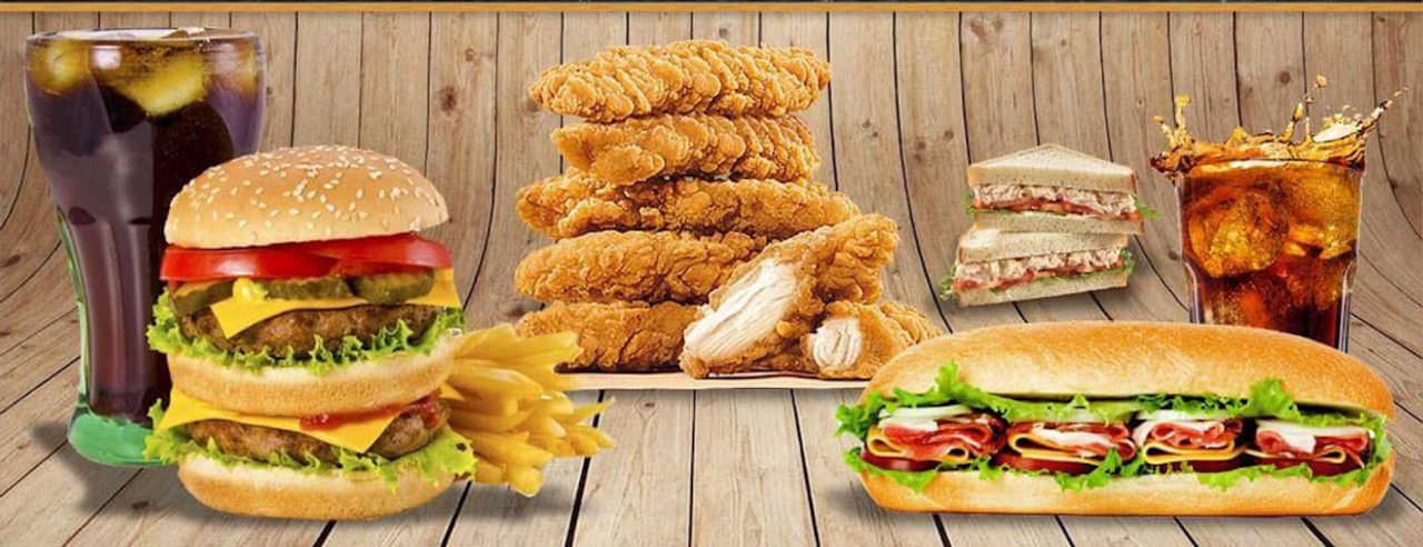 Carne de pollo con lechuga, tomate y queso edam, acompañado de papas fritas
