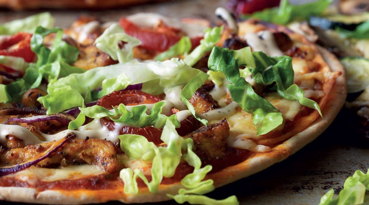 Tomate, lomo, pollo, bacon y salsa barbacoa