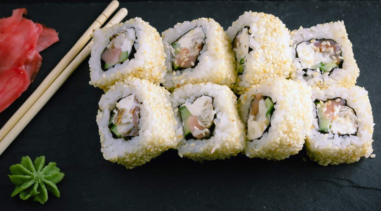 Salmón, aguacate y queso filadelfia envuelto en sésamo