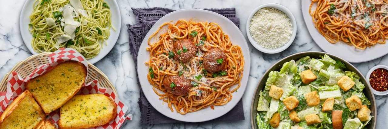 Spaguetti con la tradicional salsa bolognesa a base de salsa de tomate y carne de ternera 100%, jugosos y siempre al dente