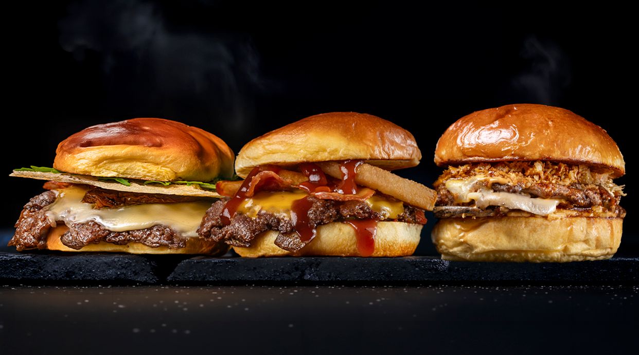Sabor característico americano, compuesta de pepinillo agridulce con mostaza clásica, doble de carne de ternera (100 g.) o crispy pollo, doble de queso cheddar, bacon y tomate asado