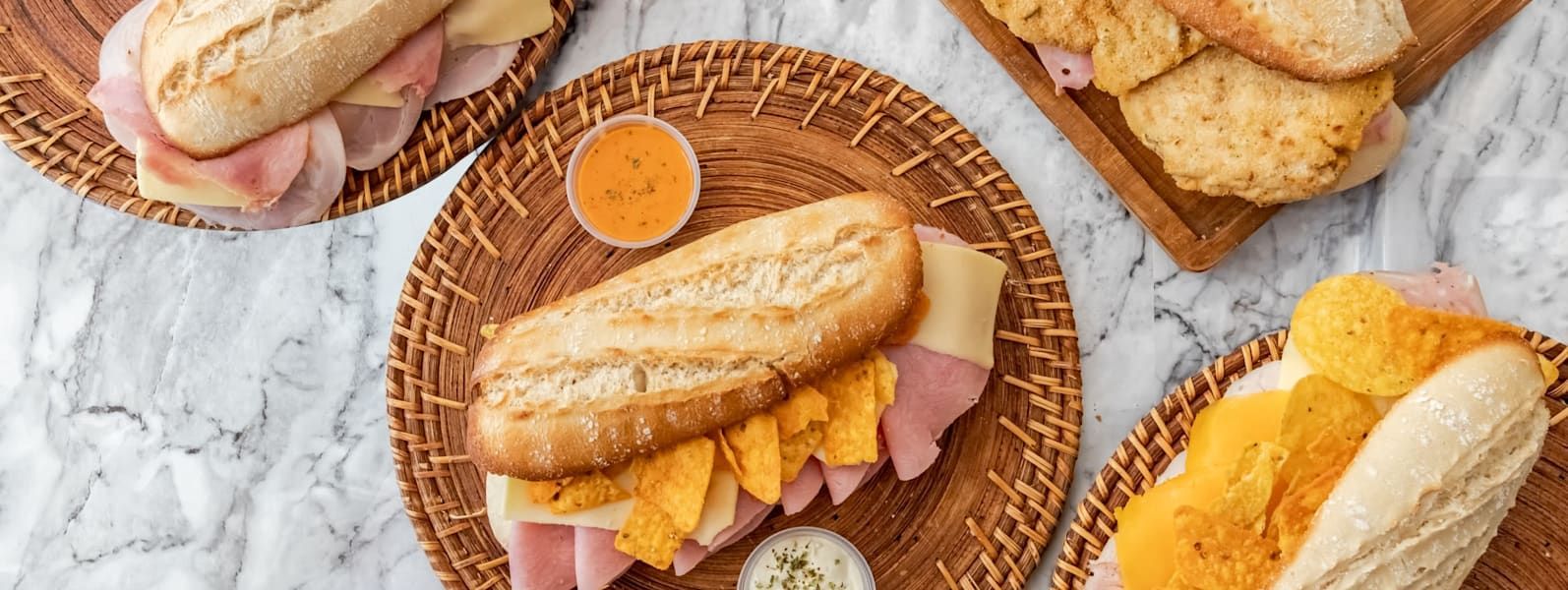Pechuga de pavo, queso, lechuga, tomate y cebolla