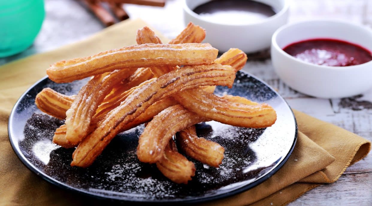 2 raciones de porras + 2 raciones de chocolate + elige 1 chucho ( nutella, crema, dulce de leche, kinder) La combinación perfecta para 2 personas