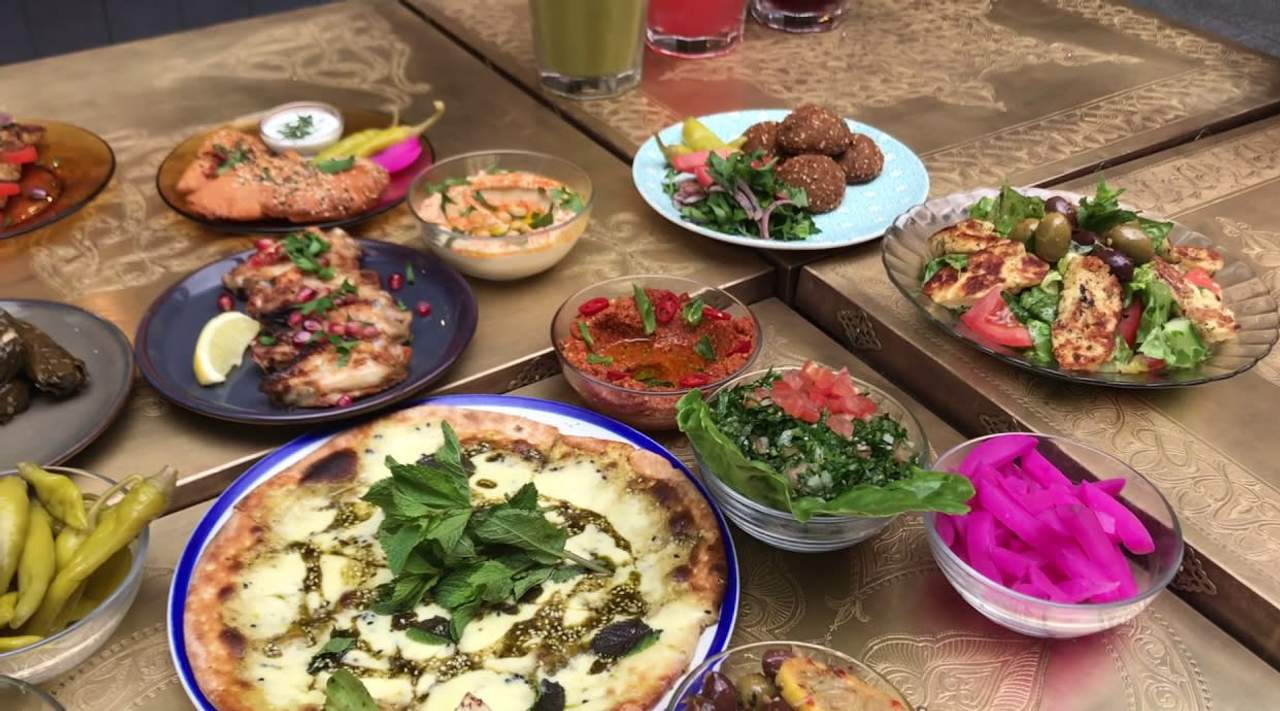 Ensalada turca coronada con carne de ternera o pollo, aseada con nuestra salsa Lal Ali
