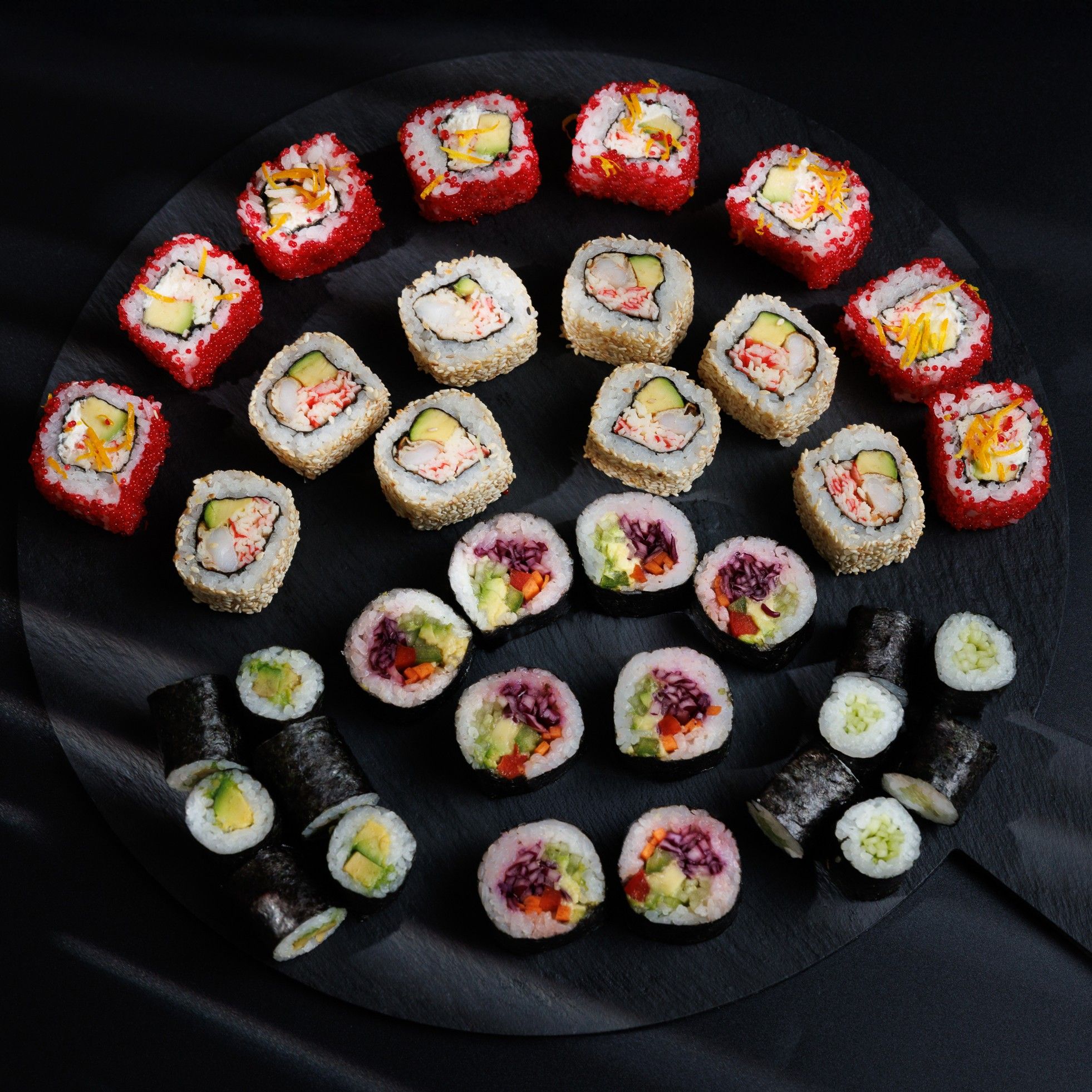 კალიფორნია, ტემპურა კრევეტი, ვეჯი როლი, ავოკადოს მაკი, კიტრის მაკი
