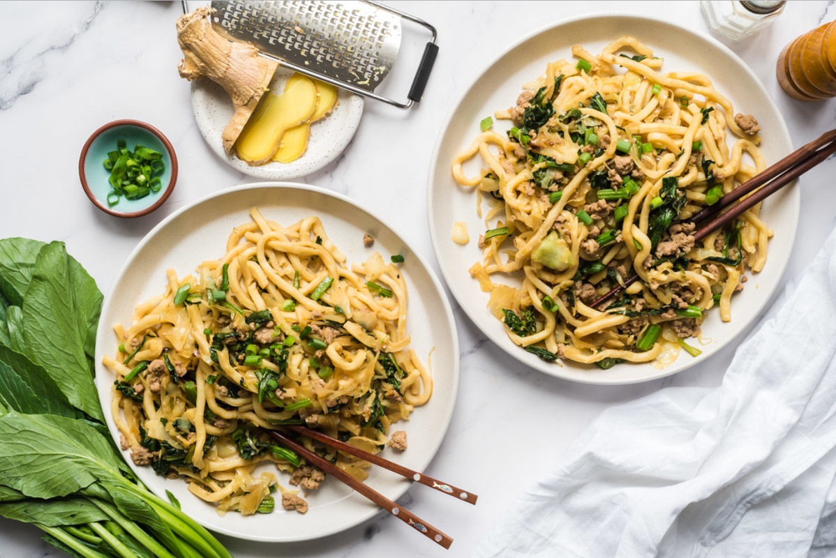 Spaghetti udon con maiale