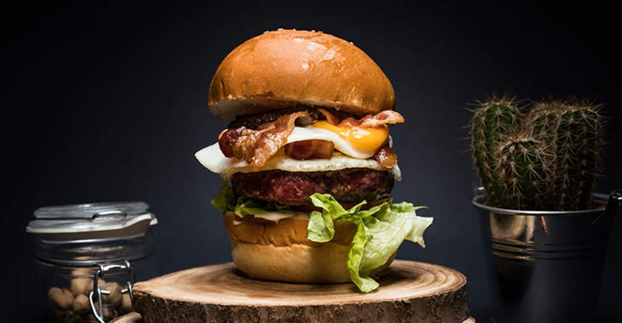 Hamburger 150 g, bacon, cheddar, provola e uovo occhio di bue