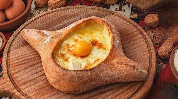 Традиционное хачапури с сыром сулугуни внутри и снаружи (26 см)
