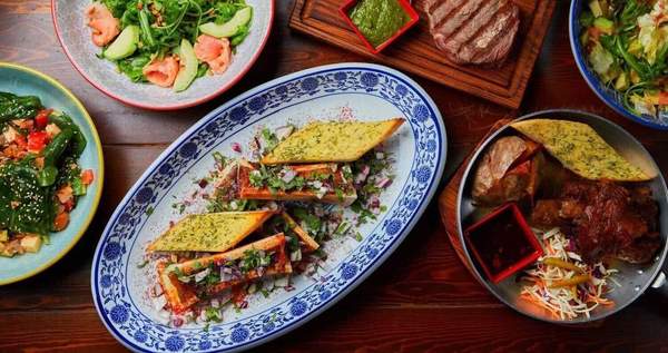 Новинка! Говядина «Брискет» собственного горячего копчения! Брискет — это нежная говяжья грудинка, копчённая в режиме низкой температуры более 10 часов. Ароматное, сочное мясо с лёгкой дымкой мы подаём с овощами-гриль.