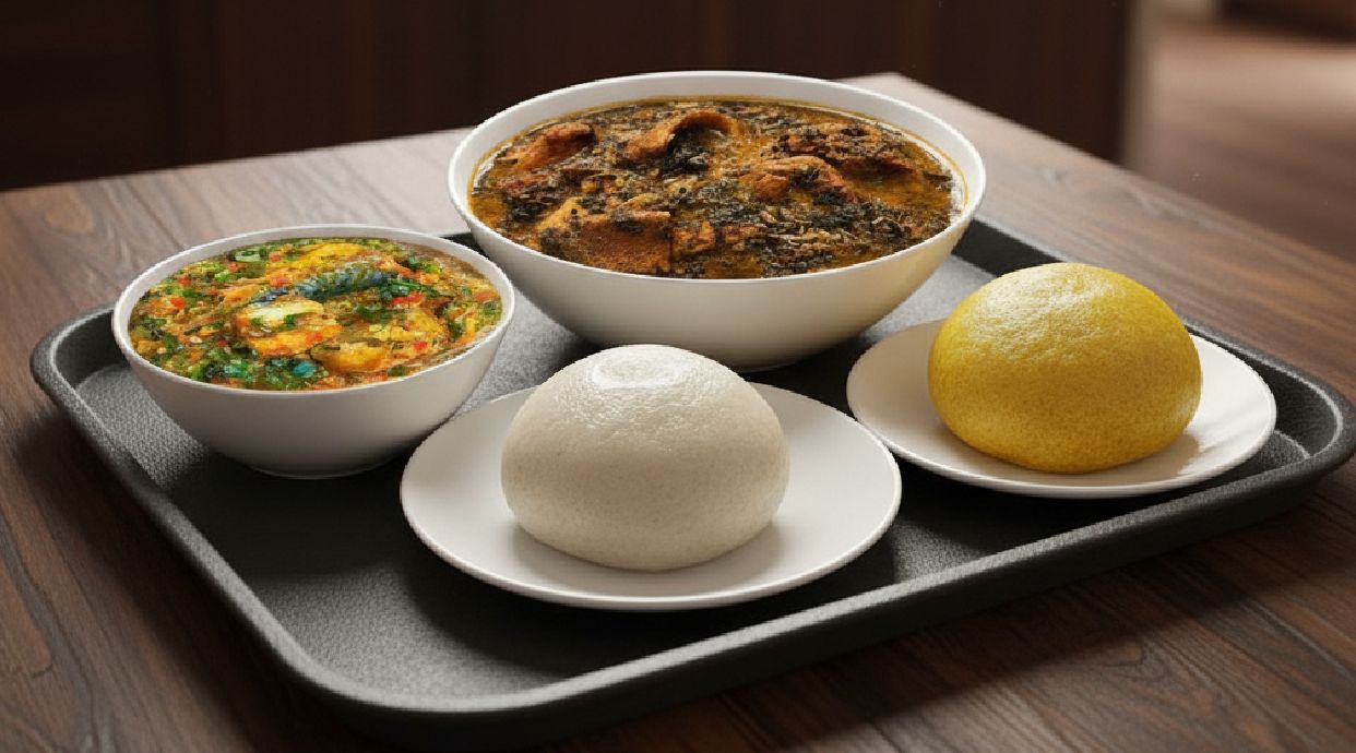 A robust, slightly bitter soup cooked with shredded bitterleaf and meat