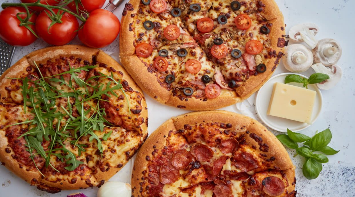 Sos, ser, pieczarki, szynka, boczek, salami, oliwki, oregano