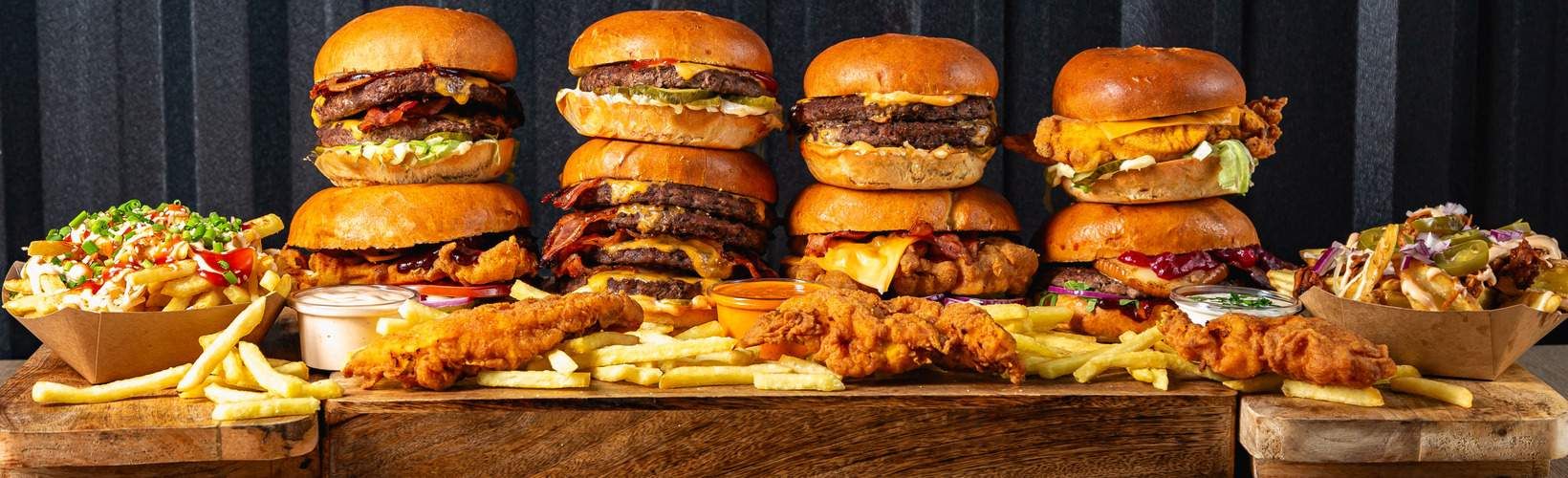 Wołowina 2x 200g, 4x ser cheddar 3x bekon, krążki cebulowe, papryczki jalapeno, sałata lodowa, ogórek konserwowy, sos szefa, pikantny