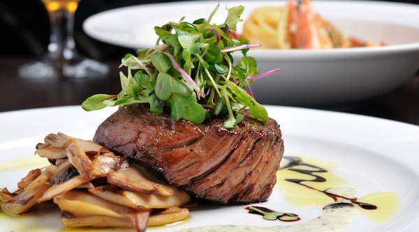 Grillowane medaliony z polędwicy wieprzowej podane z sosem ze świeżych borowików