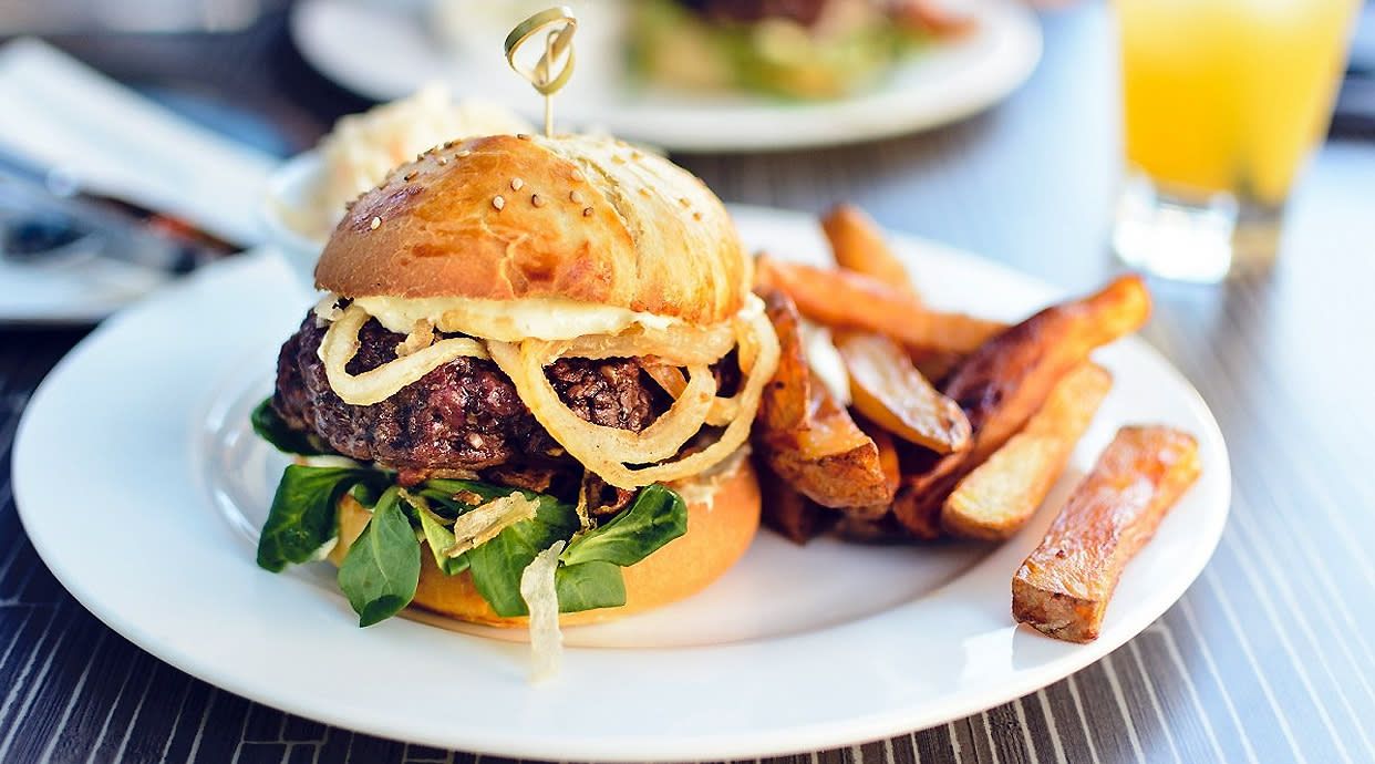 Buła, szarpana wołowina, 2x boczek grillowany, ser cheddar, mix sałat, cebula prażona, ogórek konserwowy, autorski sos amerykański
