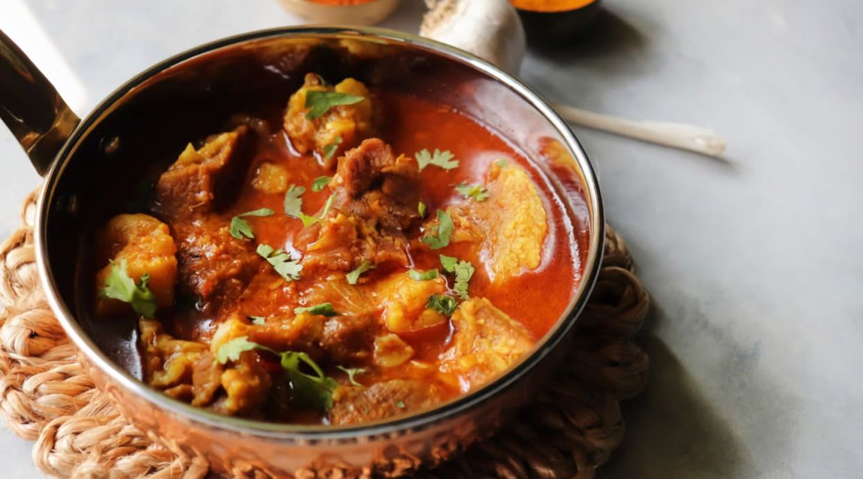 tradycyjne, pikantne i kremowe żółte curry, gotowane na mleku kokosowym ze słodkawą mieszanką przypraw i aromatycznych ziół, przede wszystkim kurkumą