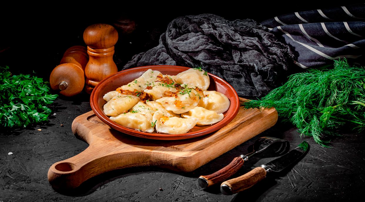 Pierogi ze słodkim nadzieniem z sera białego. Danie wegetariańskie.