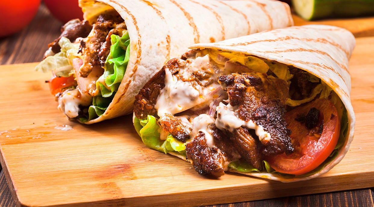 Kebab, pomidor suszony, pomidor świeży, sałata pekińska, sos