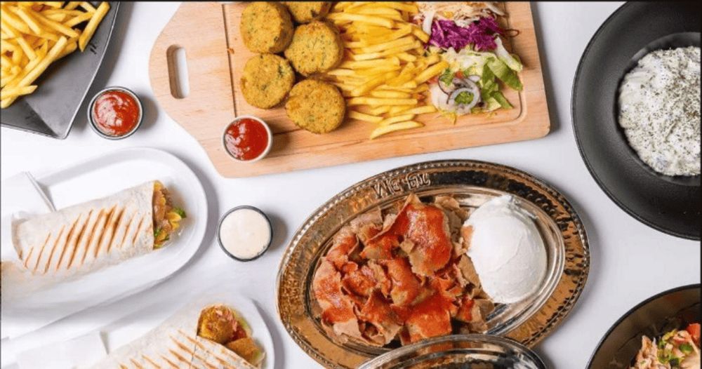 Z mięsem do wyboru, podany w bardzo cienkim cieście z serem feta, serem żółtym, surówką i sosem